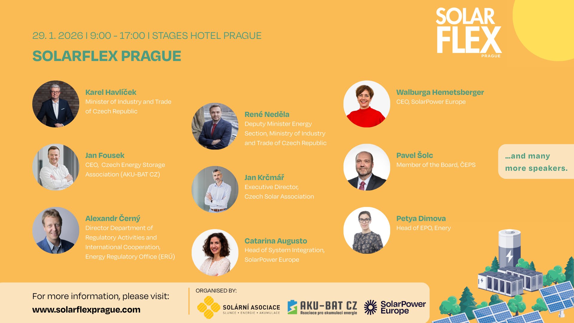 Konferenci společně pořádají SolarPower Europe, Asociace AKU-BAT a Solární asociace. Ambicí SOLAR FLEX Prague je stát se hlavní středoevropskou platformou pro dialog mezi zástupci veřejné správy, evropských institucí, provozovateli přenosových a distribučních soustav, developery, investory, technologickými firmami i agregátory flexibility.
